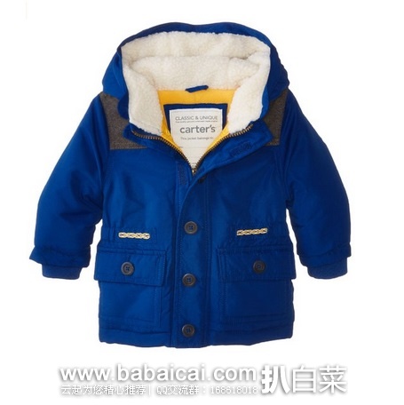 Carters 卡特 男宝连帽羊羔绒内胆保暖外套 原价$72,现金盒特价$19.95,直邮无税,到手约¥165 两色可选 下午4点结束