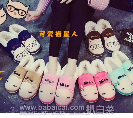 天猫商城:双11特价!比趣冬季卡通男女情侣棉拖鞋 全包跟保暖居鞋 厚底防滑月子鞋...