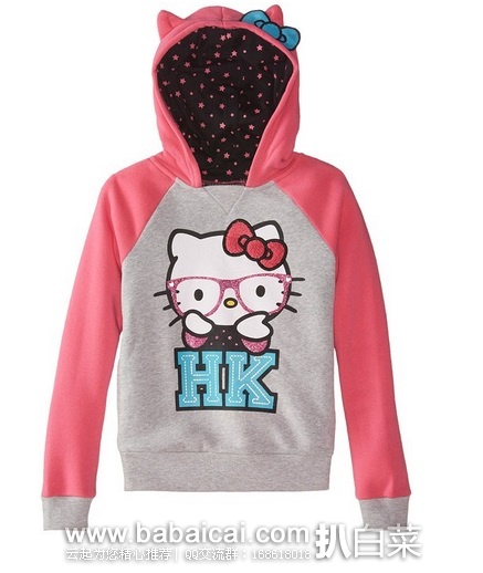 Hello Kitty 凯蒂猫 女童连帽外套 原价$40,现两色特价$19.99,公码8折历史低价$15.99,直邮无税,到手¥130
