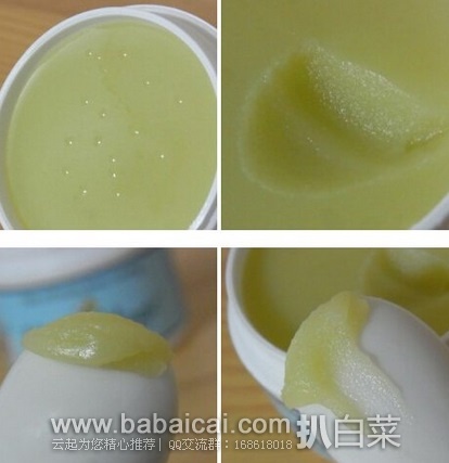 打开盖子以后,里面是奶黄微绿的膏体,比平时用的乳液更稠一些,膏体发亮。有一股淡淡的清香橄榄油味,没有任何香味。抹在手上,推开的时候,能够感觉到含有颗粒,慢慢的颗粒被溶化,成为乳液,均匀覆盖于肌肤,感觉很滋润。只需要黄豆那么大一点,睡前抹脸上,早上醒来后,皮肤不干燥,也无油腻之感。