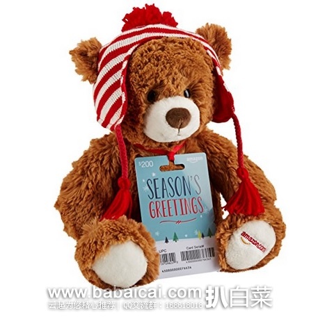 Amazon现有购买$200亚马逊礼品卡,附送Gund泰迪熊一只的活动,礼品卡就是和现金购物卡一样,到手后充值到账户使用,没有有效期,用完为止,建议选择加州地址哦,也没有消费税。活动地址>>