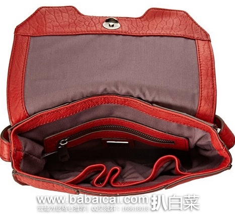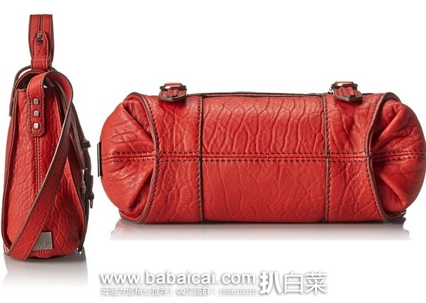 Kooba女包曾在美剧《绯闻女孩》里亮相过。Kooba由母女挡Bonnie和Abbe Held于1998年于美国创立,具有时尚的基本设计与很好的机能性,风华内敛,自然而朴素为设计理念。Kooba Handbags James Cross Body Bag 女士斜挎包,采用象皮纹真皮材质,正面双搭扣点缀,颇有剑桥包的影子,翻盖磁吸按扣开口,包内有一个拉链袋和插袋、笔袋等,外形尺寸为25 *23*5cm,带提手,肩带可调节,单肩、手提或斜挎均可,红色吸睛,造型百搭。