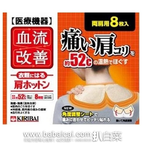 日本亚马逊:KIRIBAI桐灰 改善肩部血流镇痛保暖贴膏 肩贴温热贴 8枚特价700日元(约¥37)