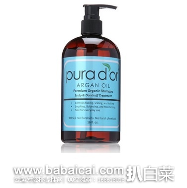 Pura d’or 纯天然有机 摩洛哥阿甘油去屑洗发水473ml 原价$37,现历史低价$13.49,直邮无税