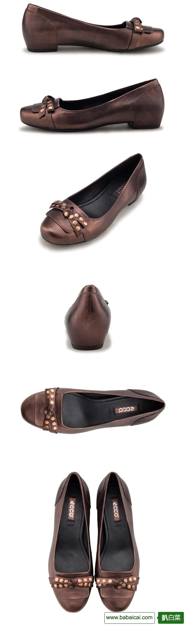 注意此款鞋偏窄,脚胖的妹纸勿尝试。ECCO Women's Rome Ballerina Flat爱步罗马牛皮平跟正装女单鞋,采用金属质感真皮鞋面,鞋头带铆钉装饰的蝴蝶结设计,柔软透气的皮质内里,精致的全皮包跟,防滑耐磨橡胶鞋底。
