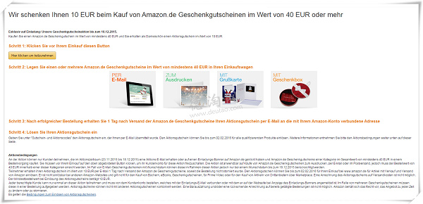 德国亚马逊:同样有机会中奖!部分用户礼品卡买€40送€10
