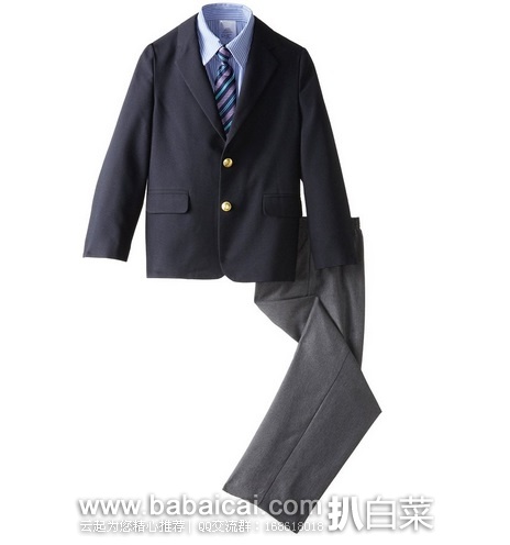 这款Nautica Boys' Solid Poplin Heather Duo Set诺帝卡 男童西服套装,是经典的四件套款式,包括西服外套和西服裤、蓝色条纹衬衫以及条纹衬衫,面料为100%纯棉。样式非常帅气,颜色百搭,宝宝穿上一定帅帅的,萌翻天!产地海地。