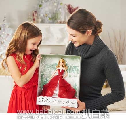 Barbie Collector 2015 Holiday Doll,芭比娃娃已经连续27年身穿特别的造型来纪念假日的到来,今年的节日收藏款芭比,身着白色内衬的大红色百褶裙,低胸点缀银色配饰。盒装尺寸约25.5*7.5*34.5cm,适合6-15岁孩子,当然也少不了喜爱收藏芭比娃娃的大孩子们。