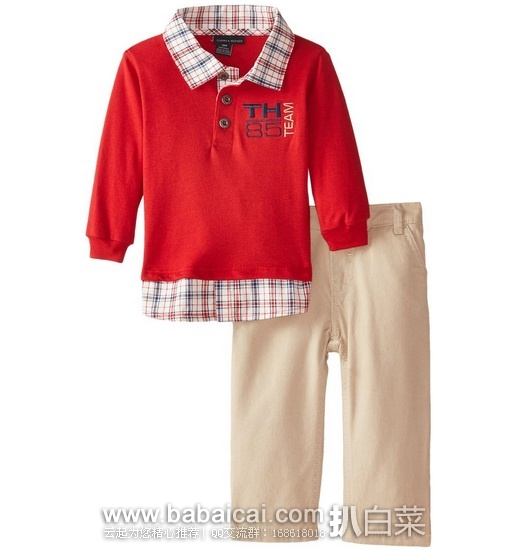 TOMMY HILFIGER是流行于世界的美国品牌,其特点是自然简洁,有着浓郁美式风格。品质做工都比较有保障。这款Tommy Hilfiger Baby-Boys Infant Red Polo Top with Pants男童Polo衫两件套,60%纯棉混纺材质,格纹假两件套设计,胸前有刺绣,呼应背后印花,搭配长裤,非常实用。可机洗,方便清理。