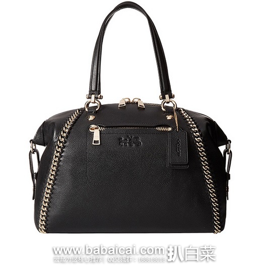 COACH Whiplash Leather Prairie Satchel蔻驰黑色金属链条斜跨包手提包,采用100%真皮材质,设计很有质感,款式别致,金属元素融入,为秋冬增添了一丝酷感。背上身美美哒。