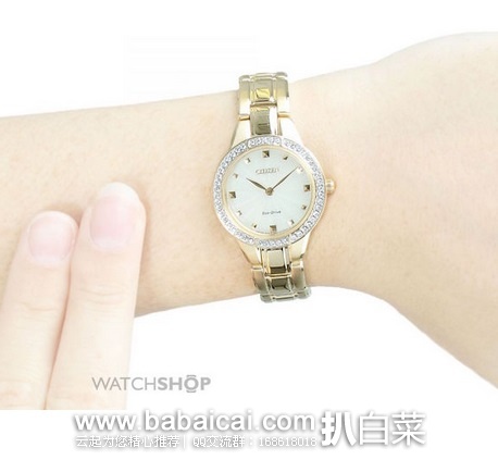 这款Citizen Women's EX1362-54P Silhouette Analog Display Japanese Quartz Gold Watch女表,之前最低$147,目前降至2.4折$70.8,可直邮中国,运费+税费约$17.4,直邮含税到手约¥567。很美貌,编号EX1362-54P的CITIZEN光动能女表,采用CITIZEN引以为豪的Eco-Drive光动能机芯,吸收日常可见光作为能量来源,终身无需更换电池。无秒针简约设计,金色表圈上镶嵌施华 洛世奇水晶装饰,太阳纹表盘,直径仅为 28mm,即使手腕细的LD也能轻松HOLD住,厚度7mm,矿物防划表镜,普通生活防水30米。