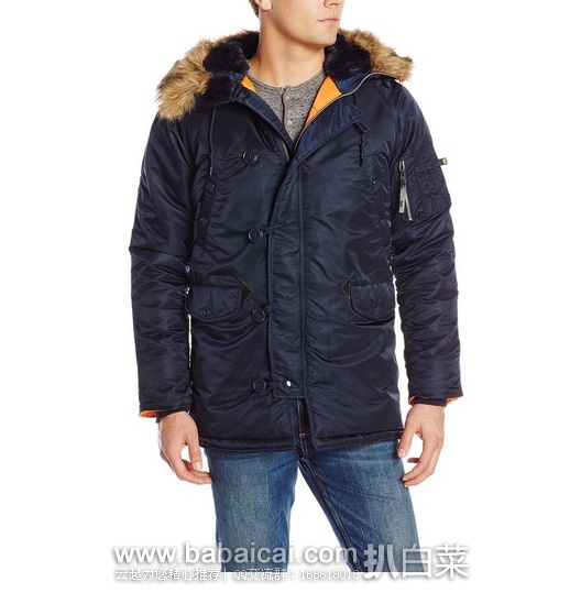 Alpha Industries 阿尔法 男士 经典N-3B修身防水防寒大衣 原价$200,现$99.99,公码75折$74.99 到手仅¥570