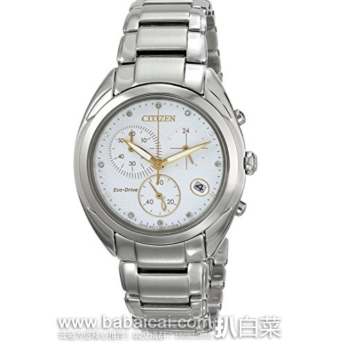 大白菜!Citizen 西铁城 FB1390-53A 女款光动能三眼计时水晶镶嵌防水时尚腕表 原价$425,现抽风价$102,直邮含税到手仅¥806