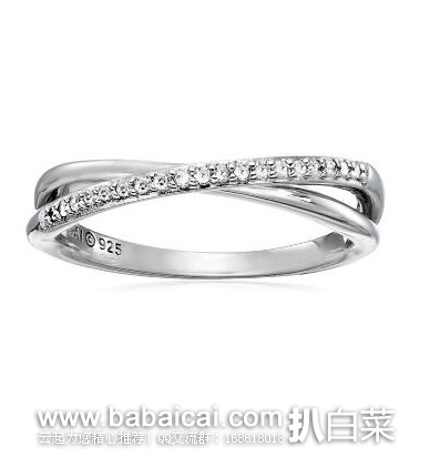 这款Sterling Silver and Diamond Crisscross Ring女戒,采用925纯银材质和白色排钻相交错,钻石是0.1克拉,I-J色,I3质地。款式别致漂亮。