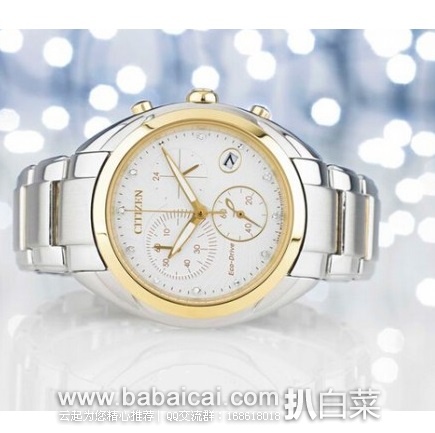 大白菜!Citizen 西铁城 FB1394-52A 女士光动能三眼计时带日历水晶镶嵌防水时尚腕表 原价$450,现抽风价$108,直邮含税到手仅¥854