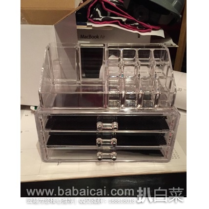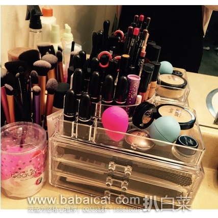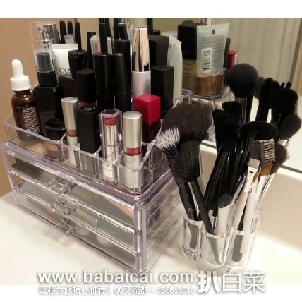 家里的化妆品是不是越来越多,是不是感觉整理起来越来越毫无头绪!这个时候你最需要的就是几个收纳盒~这款Home-it Clear acrylic Jewelry organizer and makeup organizer 收纳盒3层抽屉设计,顶部有专门位置放唇膏,眼线笔,化妆刷等笔状化妆品,顶部小盒与抽屉可以分开,随意选择摆放位置,非常实用。