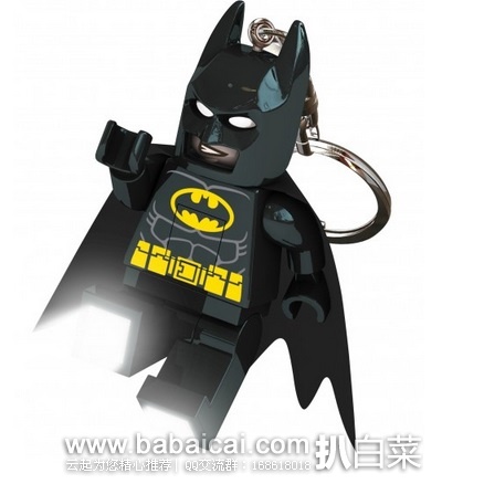 LEGO DC Universe Batman Key Light 乐高蝙蝠侠袖珍小手电,非常有意思的一个小玩意,由乐高出品的蝙蝠侠大叔,经典的乐高造型,好玩的是双脚的脚底都可以babaicai.com发光,实际上是一个袖珍小手电,挂在钥匙或者书包上都可以,大叔身高9.6cm,由纽扣电池驱动。