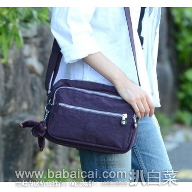 Kipling Deena 吉普林帆布挎包,采用精细皱面带有明暗纹路双格调420D尼龙材质,超轻、柔软、防水、易于折叠,外部尺寸为 19x25x12.5厘米,前置拉链babaicai.com口袋,外形时尚的同时也注重了实用性。Kipling被称为猴子包的原因是每个 Kipling包上都有一个可爱的猴子挂件,颇符合许多妹纸喜欢在包上挂上一堆小玩意的心理,作为平时逛街随身包时尚又轻便。