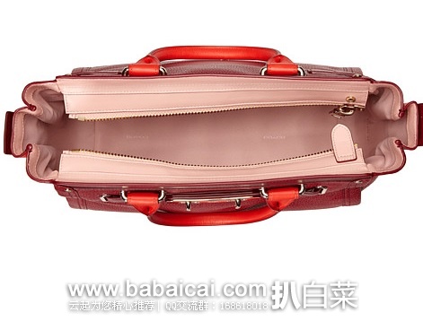 COACH Color Block Swagger Carryall女士通勤单肩手提包,采用柔软的鹅卵石皮革材质,SWAGGER手提包的名字源于Bonnie Cashin于1967年创造的亮丽的黄铜镶babaicai.com边设计,包内设计有拉链小口袋+多功能口袋+手机插袋,适合放置一些小物品和手机,主袋开口采用拉链封合,保证安全及隐私。外部尺寸30*16.5*23厘米,肩带可调节可拆卸。搭扣处精致的硬件充满质感,同色织布内衬,精致而耐用,养眼的樱桃红也是吸睛利器,是一款逛街通勤均适合的包包。