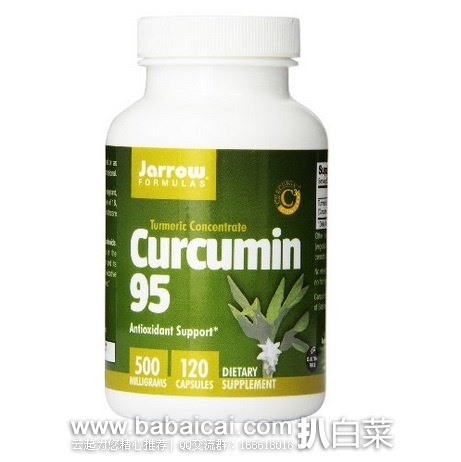 Jarrow Formulas Curcumin 95, 500 mg, 120 Count, 今天这款姜黄萃取精华素,每粒姜黄素萃取物含95%约5000mg姜黄素,姜黄素的主要药理作用有抗氧化、抗炎、抗凝、降脂、抗动脉粥样硬化、抗衰老消除 自由基及抑制肿瘤生长等。姜黄素可以杀死肝炎病毒、修复损伤的肝细胞、改善肝脏实质受损,姜黄还可快速分解体内乙醇,降低血液中酒精含量,起到解酒、护肝 的作用。