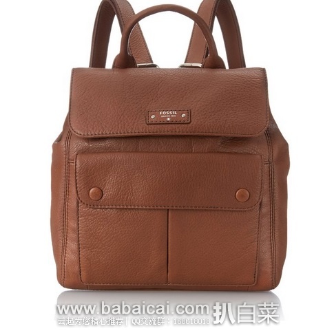 Fossil Blake Backpack 化石女士真皮双肩包,采用牛皮材质构成,质感很赞,大小约32.51*32.25cm,足够日常使用,双肩包款式负重更轻松,前置烫babaicai.com金logo以及2个插袋,顶部翻盖按扣开合,设计感很强,内部设置一个拉链口袋以及一个插袋,方便分类使用。