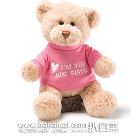 过年礼物好选择!Gund 穿粉色T恤的Big Sister毛绒泰迪熊 30cm 特价$9.36,直邮无税,到手仅¥89
