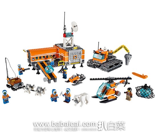 这款LEGO City 60036: Arctic Base Camp乐高 城市系列 60036 北极宿营基地,共有多达1099块砖,是极地系列中规格最大的套装,包括移动科研站、履带采冰车、起吊直升机、简易雪地车、狗狗雪橇,还有一只萌萌的北极熊,玩点颇多。