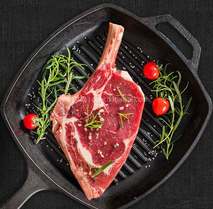 艾克拜尔 原切大战斧牛排厚切带骨牛扒 1kg,甄选120天青壮年公牛,原切无腌制,精选第5~12根肋骨部分,去除多余部分骨头和肥肉,只保留少量骨柄,油脂与肉的比例恰到好处;肉质鲜美细腻,一口咬下,丰富的汁水混合着肉香,让人欲罢不能。
