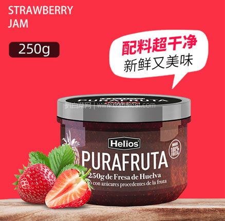 Helios集团在西班牙果酱制造业中处于第一的地位,生产优质的果酱已有一个多世纪。这款是纯熬草莓酱,≥95%果肉含量,0添加蔗糖/防腐剂/香精/色素,纯粹果肉提供甜味,宝宝安心吃,一罐≥20颗完熟大草莓,看得见的果肉,酸甜清爽!