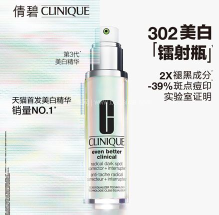 目前feelunique中文香港仓这款Clinique 倩碧 美白淡斑精华液 100ml 302美白镭射瓶,降至£67.95,一件直邮到手约577元,feelunique中文官网购买地址>>