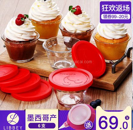 天猫商城Libbey 利比旗舰店这款Libbey 利比玻璃麦芬杯6个装,售价¥69,可领取¥20优惠券,实付¥49包邮,还送裱花器还有量杯套装可选,日常喜欢做小蛋糕的朋友可以考虑,更环保、比硅胶材质更安全、容易清洗,带盖设计,更好保鲜。天猫商城购买地址>>