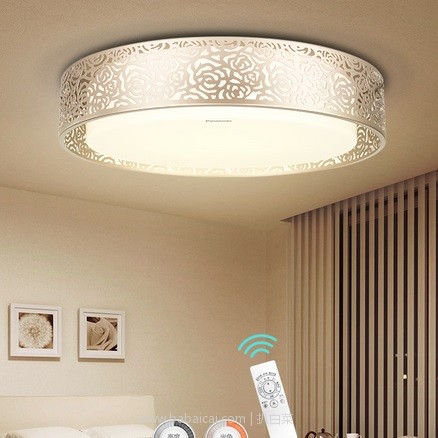 Panasonic 松下 HHLAZ1780 遥控调光吸顶灯,采用LED芯片,Ra80以上,色彩还原度高,光线柔和。智能遥控,可调光调色,亮度调节可在5%-100%之间,色温可调节在暖白色3000K-昼白色6500K之间。铁艺花纹镂空,以中国元素祥云为样式,简约大气。乳白克力灯罩,透光性强,无暗区。
