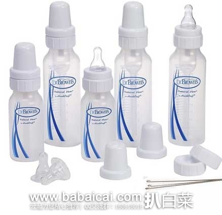 Dr. Brown's BPA Natural Flow Bottle Newborn Feeding Set,Dr. Brown's布朗博士新生儿奶瓶套装,包括3个240ml的奶瓶、2个120ml的奶瓶、2个二级奶嘴、2个储奶防漏盖和3个奶瓶刷。奶瓶是PP材料,能够耐高温,不含 B…… 阅读全文
