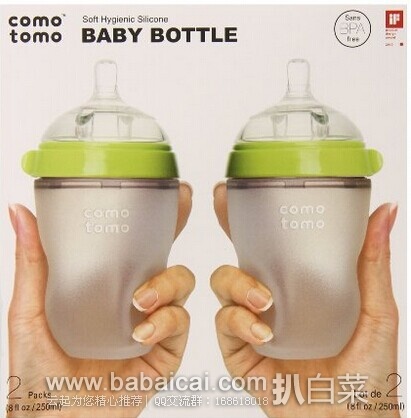Comotomo Baby Bottle, Pink, 8 Ounce, 2 Count妈 妈乳感硅胶软性奶瓶,瓶身和奶嘴使用最接近人体触感的医疗级硅胶材质(经FDA认可),无毒、无色、无味、不含双酚A,能更好的保持食物的 新鲜度,无异味且不易破碎,保证卫生和安全的喂养。其他所有组件的材质也均不含有双酚A。 直径6.6厘米超宽口设计,可…… 阅读全文