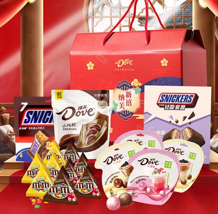 Dove 德芙 纳芙新禧 脆香米/士力架/m豆 多口味礼盒,内含德芙多款精典产品,脆香米/士力架/m豆等,浓醇经典,热销爆款,甄选浓醇可可脂,精心挑选可可豆,进口奶源,低温烘焙,融化在口中满满的醇香。高端质感宫廷风大红礼盒,送礼超有面。