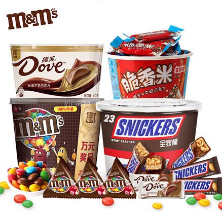 mms豆桶装,士力架,脆香米,黑巧克力任意搭配!香浓可口,入口柔滑,一次尽享。