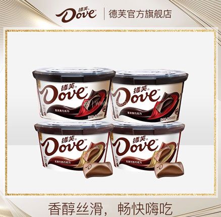 天猫商城德芙官方旗舰店旗舰店112g*4碗售价价¥59.9,APP端下单可享百亿补贴价,实付¥43.9包邮,小碗装好价,有牛奶、黑巧2款可选。天猫商城购买地址>>
