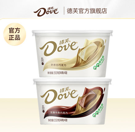 目前252g*2碗装天猫商城德芙官方旗舰店百亿补贴价¥45包邮,折¥22.5/碗,香浓黑巧、丝滑牛奶白巧两种口味组合可选。经典的德芙碗装巧克力,超市卖四十多元一盒。天猫商城购买地址>>