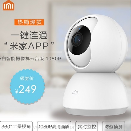 天猫商城:双11预告!小米生态链,小白 004号 1080P云台版智能摄像头 特价¥179,领券减¥30实付新低¥149起包邮 白菜,销售冠军,评价很高~0点开始,前500名还送64G内存卡,前1500名送32G