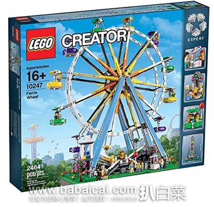LEGO 乐高Creator创意组 Expert 10247 Ferris Wheel摩天轮组装玩具 原价$200,现$159.99,不可直邮,转运到手约1315左右,美亚现玩具自营满$100送联名定制版泰迪熊一只哦。亚马逊购买地址>> | 联名定制版泰迪熊地址>>