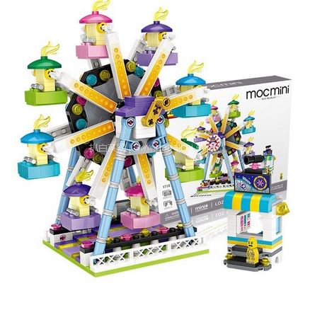 这款星堡积木 XB-01106 摩天轮,共660颗粒,可以360°旋转,有7个座位,可与乐高游乐场系列兼容,适合6岁以上儿童。