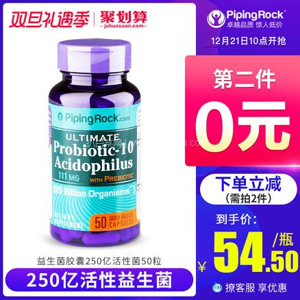 天猫国际PipingRock海外旗舰店售价¥109,第2件0元(默认下单即为2瓶),还可叠加店铺¥20优惠券,券后实付¥89包邮包税,折合¥44.5/瓶,肠道不好的可试试。250亿活性益生菌,全家肠胃一瓶搞定,每天一次,轻松排便,增强免疫力。天猫国际购买地址>>