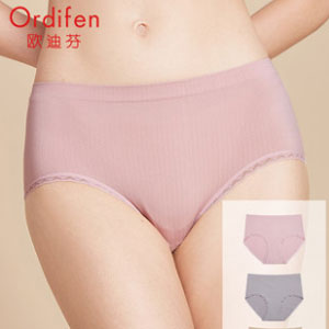 Ordifen 欧迪芬 纯色蕾丝边中腰内裤3条装,高弹力精纺面料,反复拉伸不易变形,更能紧密贴合腰身臀胯,超大弹性,120斤可穿;一体成型无缝无痕;棉质里裆,柔软透气,2CM宽双层腰头,紧致不勒肉;素雅花边不勒腿,细碎点缀,清新可人。