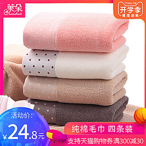 莱朵毛巾采用新疆长绒棉材质,丰盈的纯棉毛料,双面毛绒舒适加倍,装饰缎面平整细织,锁边跑线西米,不易挂丝,耐洗耐用。多款花色可选,尺寸:72*34cm*95g*4条。