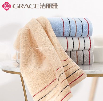 Grace 洁丽雅 纯棉长绒棉毛巾,毛巾以新疆长绒棉为原料,纯棉,吸水性亲肤性都更好,活性染色工艺,下水不易掉毛、褪色,可反复捻洗,经久耐用。