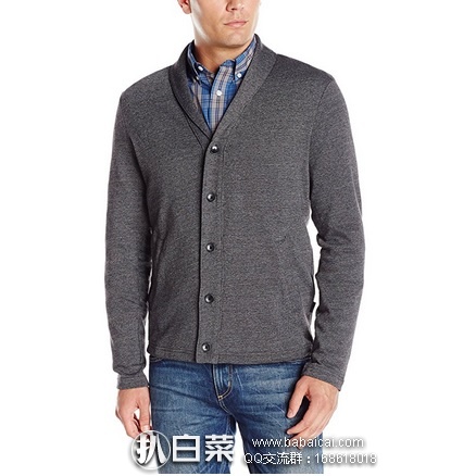 Perry Ellis Men's Shawl Button Front Cardigan派瑞·艾力斯 男针织开衫,V型翻折领,标准版型,采用55%棉,柔软舒适;再混入44%聚酯纤维,增强了babaicai.com抗拉扯性和耐磨性,易洗速干。
