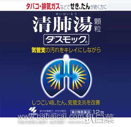 现日亚自营该款特价1154日元,折合约¥69,不含运费,食用方法,一次一包,一日三次。日本亚马逊购买地址>> | 更多日亚产品推荐看这里>> | 日本亚马逊2016年最新手把手教程>> 这款【第2類医薬品】ダスモック 12包清 肺汤有助于清除支气管黏膜上的脏东西,抑制空气污染(吸烟、二手烟、汽车尾气、工业废气等)引起的不适。其药理作用可去痰,能促进支气管粘膜分泌, 增加纤毛摆动,促进排痰,能够减轻呼吸系统的问题,还能够促进受损支气管粘膜上皮的修复。一般来说,吸……