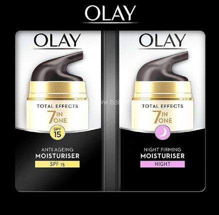 Olay 玉兰油 多效修护7效合一抗衰老日霜,一瓶可代替精华+面霜+防晒+妆前底霜,一瓶改善7大肌肤问题,有效抵御紫外线,补水润泽,改善暗沉,提亮肤色,淡化细纹,紧致肌肤,细致毛孔,改善粗糙。防晒指数SPF15,提供UVA和UVB的防护。晚霜更是可以滋润细致,肌肤柔滑细腻,淡化细纹,紧致肌肤。
