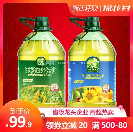 天猫商城探花村旗舰店葵花橄榄油+玉米油组合4L*2瓶装售价¥119.9,可使用店铺¥40优惠券,实付¥79.9包邮。礼盒装送人自用都不错~纯净天然,非转基因,油很清透,做菜好吃,健康放心。天猫商城购买地址>>