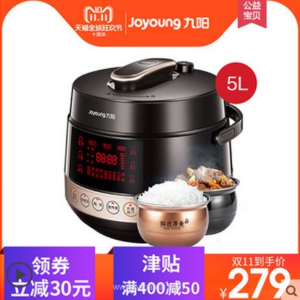 天猫商城 九阳专卖店Joyoung 九阳 Y-50C80 家用5L双胆 智能电压力锅, 12点淘抢购售价¥309,叠加¥110优惠券,券后实付¥199包邮到手,比券后¥229的价格又便宜了¥30,新低好价,其他渠道普遍售价¥269+,铜匠厚釜双胆,还是压力锅,很适合家用。天猫商城购买地址>>